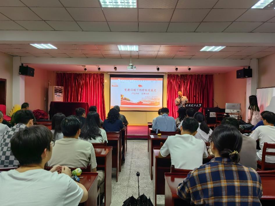 随后研究生党员何帆作“抗战时期教育救国历史”主题分享;东院老协余正建会长回顾了建校初期老党员、老教授为学校的建设和发展所做出的巨大贡献,并介绍了《武汉理工大学赋》的创作经历。