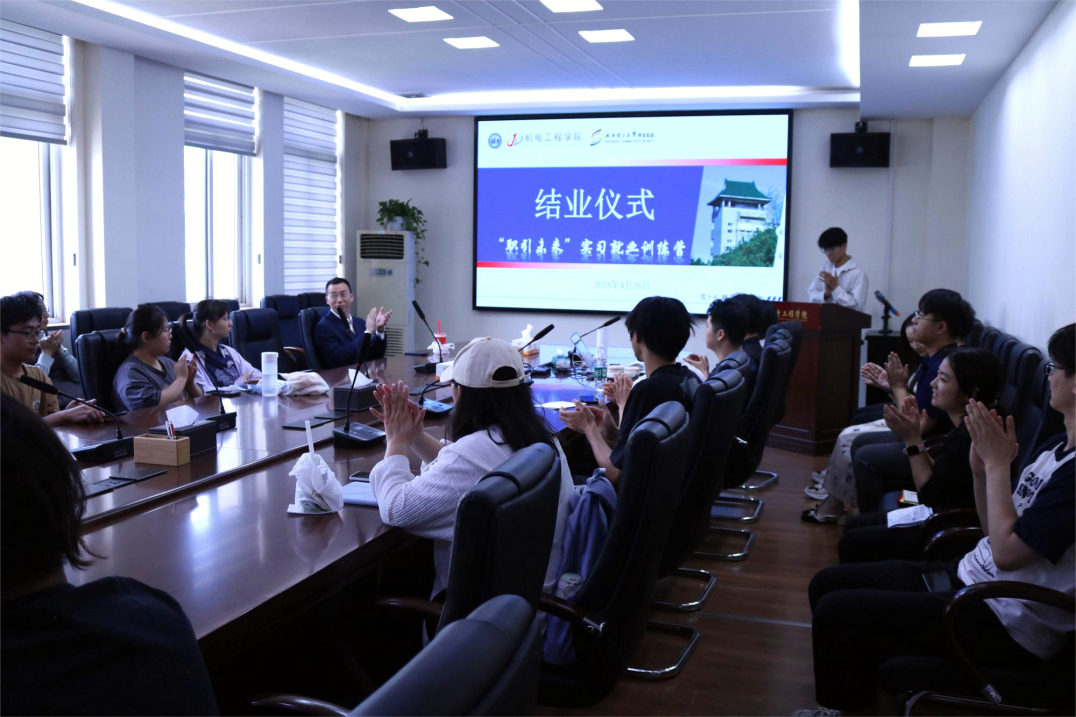 4月26日,机电工程学院在学院410会议室隆重举行“职引未来”实习就业训练营结业仪式。训练营主讲老师熊伟、研究生辅导员周舜、本科生辅导员张家雪及全体营员共同参与,见证学子们满载收获的重要时刻。